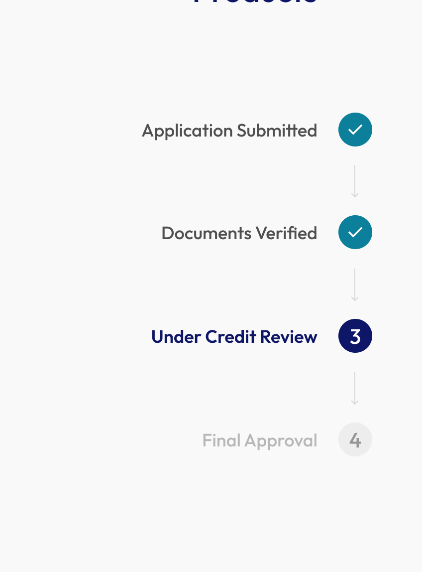 Key UI elements, like the application stepper, were built as flexible components with multiple states to ensure a consistent user experience across complex flows.