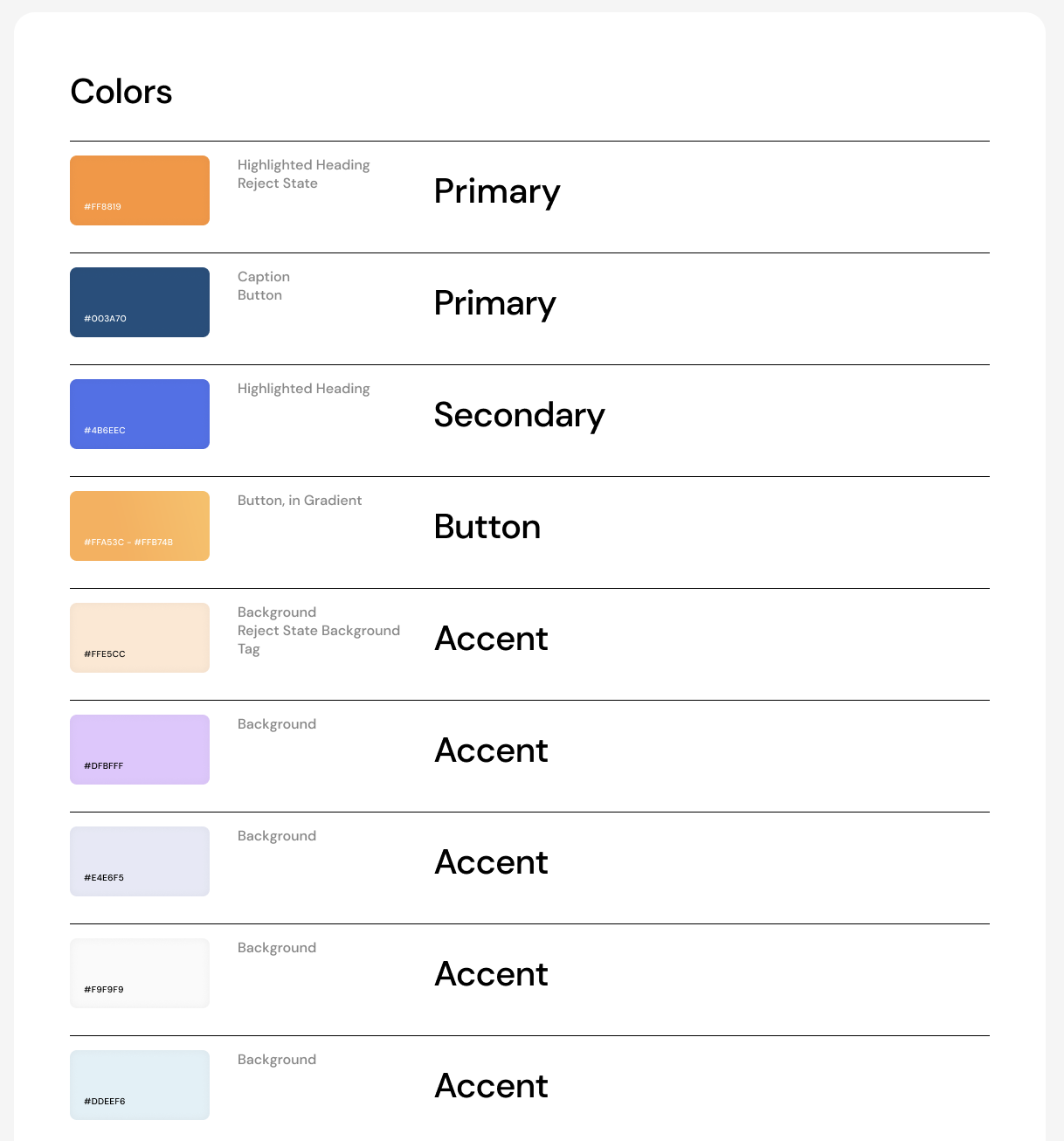 A clear system of colors, typography, and spacing was defined to create a cohesive and professional visual language for the entire platform.