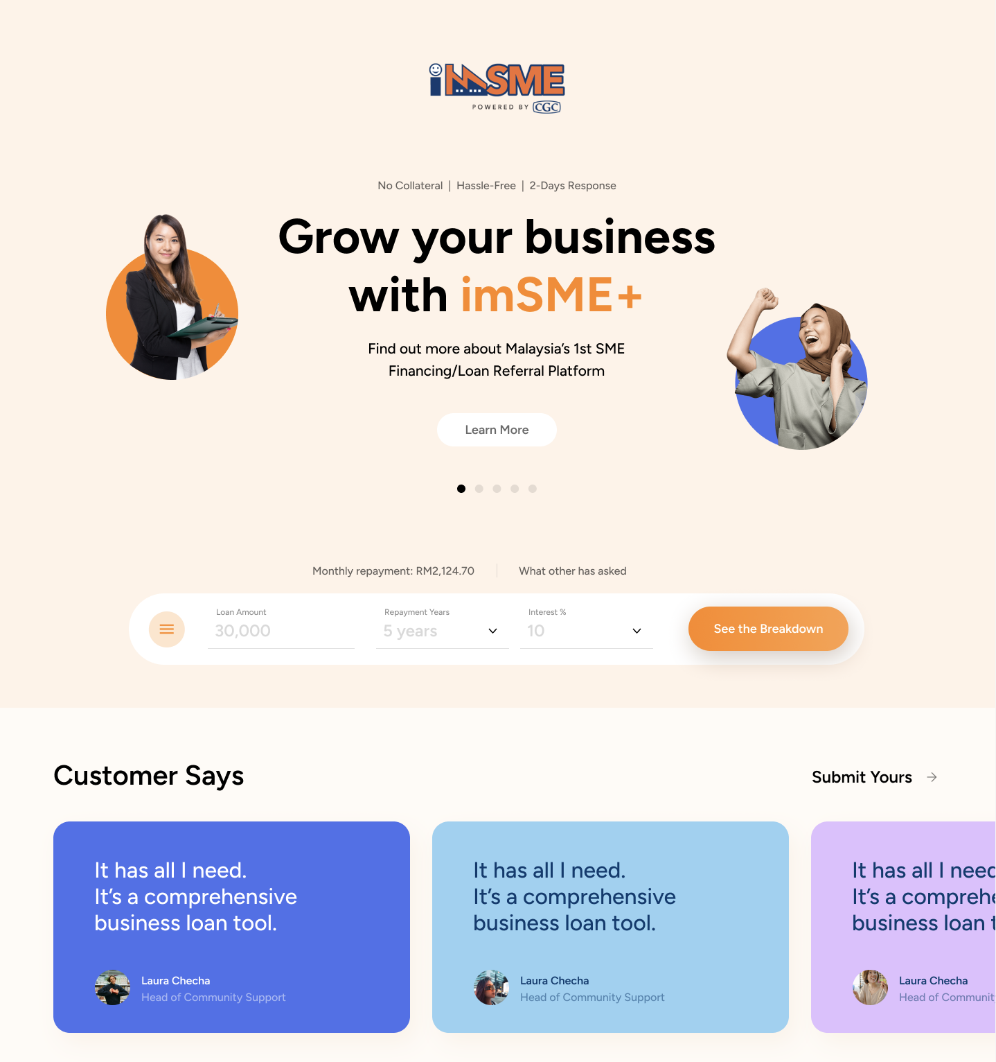 This case study reflects the strategic design and user experience deployed during my tenure (July 2023 – Jan 2025). As of May 2025, the live platform (imsme.com.my) has undergone subsequent updates by a new team and may no longer reflect the design decisions presented here. The data cited above corresponds strictly to the 2024 Audited Financial Year during which my design was active.