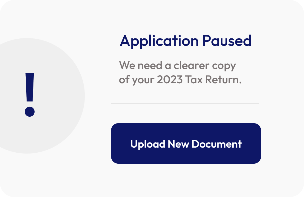 Actionable insights explaining why a rejection happened and how to fix it (e.g., "Missing Tax Docs").